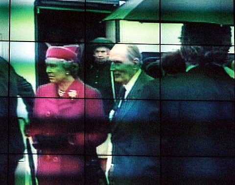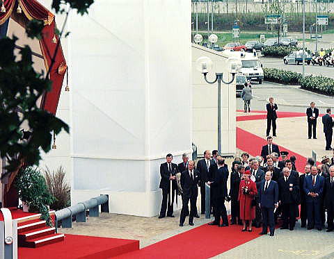 Queen and President Mitterrand at the inauguration ceremony on 6th.May