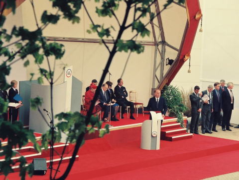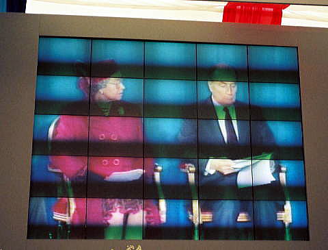 who went there and back under the English Channel alive" that was awarded by great applause(picture right of the 2 pictures on the top of this page), followed by speeches by the Queen this time in English and by the President